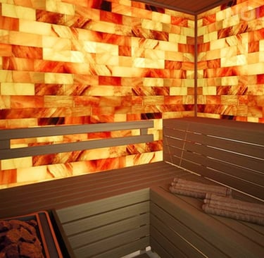 A Himalayan salt sauna is simply a combination of a conventional sauna, and a Himalayan salt roomor salt cave. Regardless of what type of sauna you have, it can be easily “upgraded” or converted into a Himalayan salt sauna, with the addition of authentic Himalayan salt boulders and bricks and fixtures throughout the room.