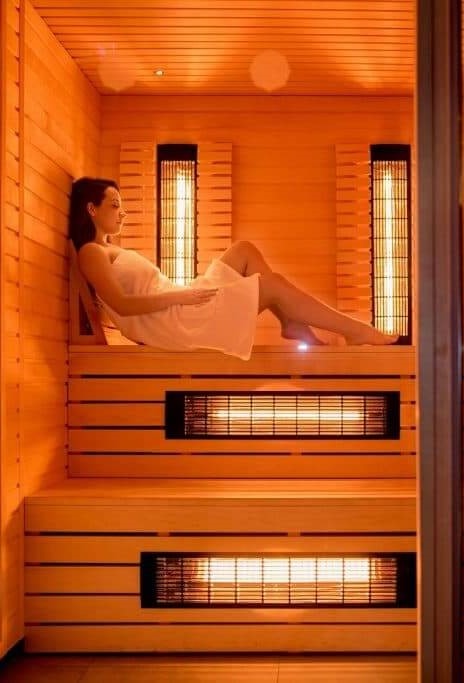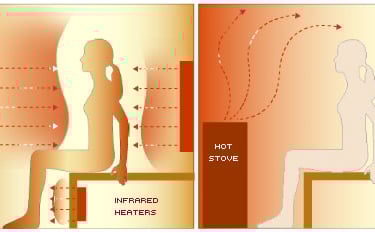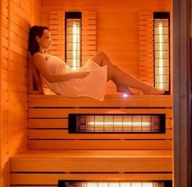 Infrared sauna uses Infrared light or radiation to create heat which is invisible to human eyes. "Far" or "Near" describes where the infrared waves fall on the light spectrum. A traditional sauna uses heat to warm the air, which in turns warms your body. Whereas, an infrared sauna heats your body directly without warming the air around you. The appeal of saunas in general is that they cause reactions, such as vigorous sweating and increased heart rate, similar to those elicited by moderate exercise. An infrared sauna produces these results at lower temperatures than does a traditional sauna, which makes it accessible to people who can't tolerate the heat of a conventional sauna.